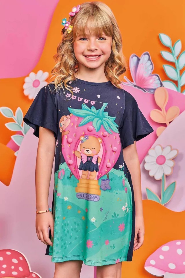 VESTIDO KUKIE ALECRIM CASA MORANGUINHO AZUL MARINHO